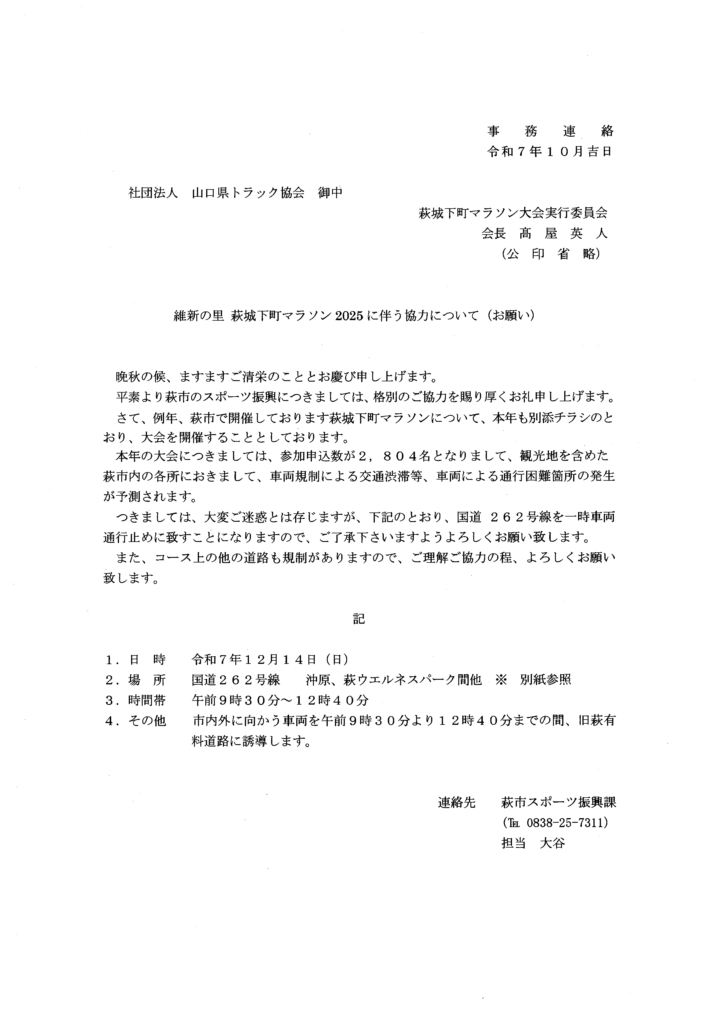 萩城下町マラソン2025に伴う協力について《萩市》